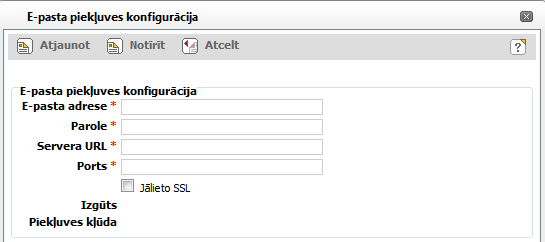 Piezīme! E-pastā jānokonfigurē, ka e-pasts nepieņem pielikumu datnes, kas pārsniedz konfigurācijas parametrā ‘Augšupielādējamās datnes maksimālais apjoms Mb)’ definēto vērtību.
