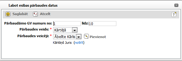 Ja ir atzīmēts pārbaudāmo GV numuru intervāla beigu numurs, tad jābūt norādītam arī sākuma numuram. |