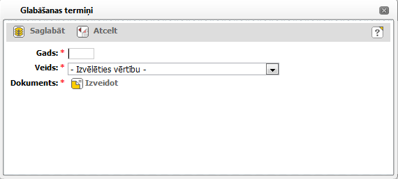 Logs paredzēts jauna glabāšanas termiņa pievienošanai vai termiņa maiņai.