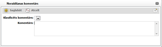 Noraidīšanas komentāra norādīšanai – vērtību izvēle no klasifikatora ‘Noraidīšanas komentāri’. |