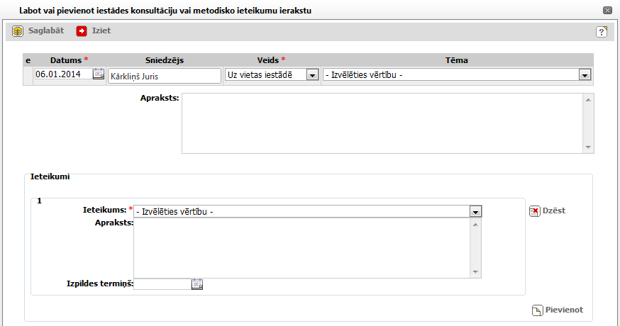 Logs paredzēts konsultācijas ieraksta pievienošanai.
