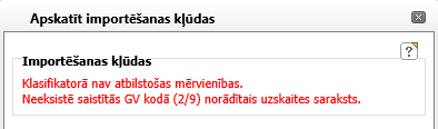 Tiek attēlotas visa sērijas vai lietas importa kļūdas katra savā rindā. |