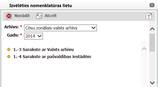 Lietu nomenklatūras lietu saraksts. |