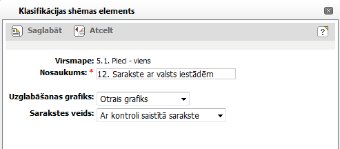 Noklikšķinot uz [Saglabāt], tiek saglabātas veiktās izmaiņas klasifikācijas shēmā.