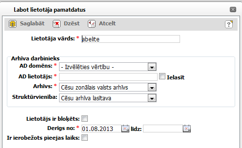 Logs paredzēts lietotāja pamatdatu labošanai vai lietotāja dzēšanai.