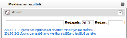 Ja atrasto ierakstu skaits pārsniedz maksimāli atlasāmo ierakstu skaitu, tiek attēlots informatīvais paziņojums ‘Meklēšanas rezultātu skaits pārsniedz maksimāli atlasāmo ierakstu skaitu. Precizējiet meklēšanas kritērijus!’.