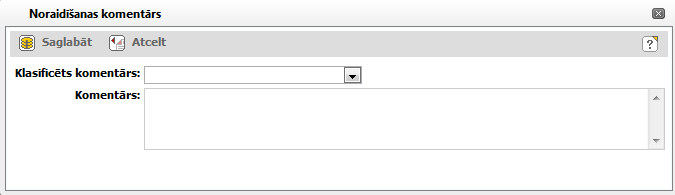 Noraidīšanas komentāra norādīšanai – vērtību izvēle no klasifikatora ‘Noraidīšanas komentāri’. |