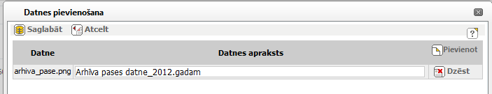 Logs ‘Pases datnes pievienošana’ paredzēts, lai pievienotu uzraudzības iestādes arhīva pases datni.