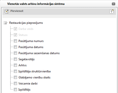104. att. Meklēšanas kritēriju pievienošana (restaurācijas pasūtījumiem)