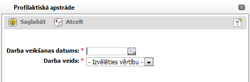 Lai pievienotu glabājamās vienības profilaktiskās apstrādes datus, glabājamās vienības šķirklī Fiziskais stāvoklis apakššķirklī ‘Profilaktiskās apstrādes’ (skat. aprakstu 13.1.5. Šķirklis: Fiziskais stāvoklis) noklikšķiniet uz [Pievienot].