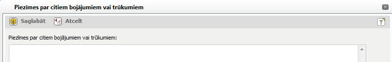 Lai pievienotu piezīmes, esības un fiziskā stāvokļa pārbaudes loga šķirkļa ‘Dati par pārbaudi’ blokā ‘Piezīmes par citiem bojājumiem vai trūkumiem’ noklikšķiniet uz [Labot].